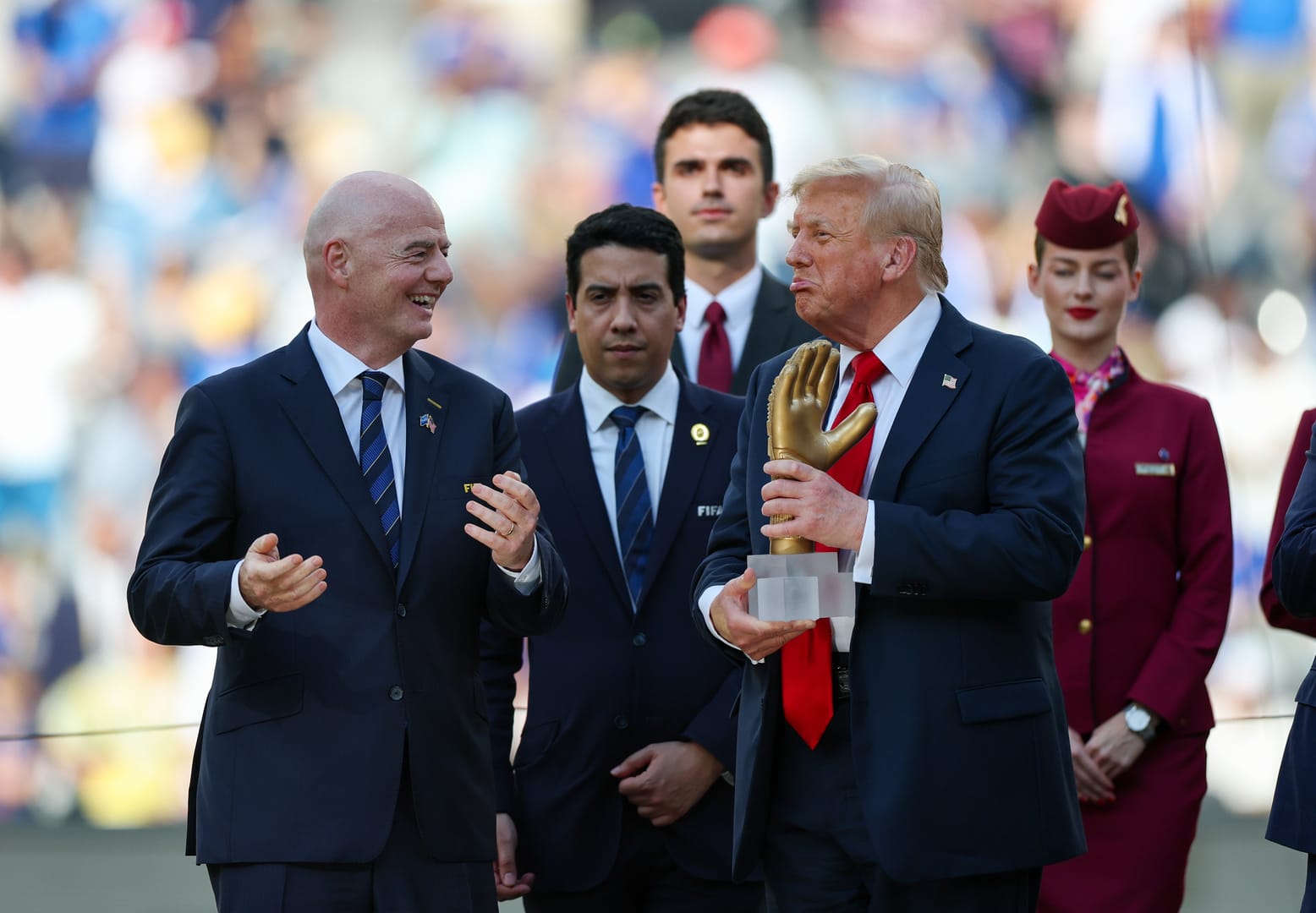 FIFA President Gianni Infantino making an attempt to get Trump to go away the stage as Chelsea have been lifting their Membership World Cup trophy.